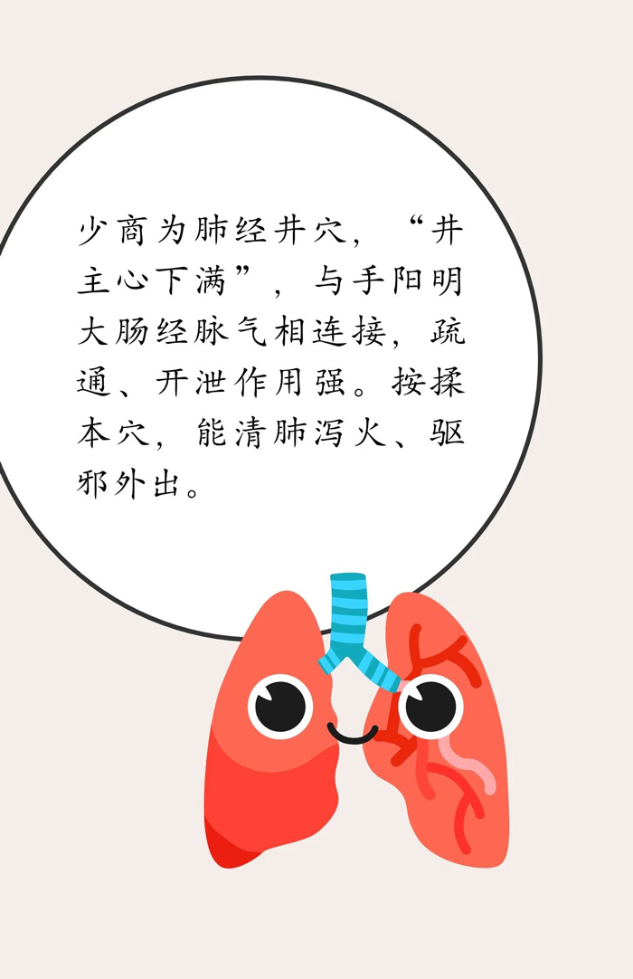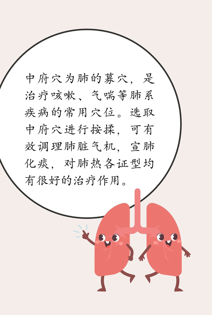 日常生活中,可结合肺热症状,在医生指导下按揉中府、鱼际、少商、尺泽、合谷等穴,能有效宣肺解表、祛风清热,解除肺热引起的诸症。