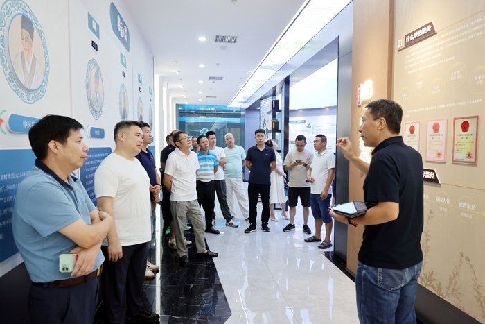 活动伊始,热敏灸集团副总经理施鸣远带领商会成员们参观热敏灸健康智慧馆,对艾灸文化的悠久传承、热敏灸技术的守正创新及热敏灸智能协同系统(机器人)有了初步、生动的了解。