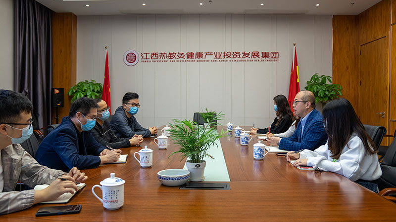 5月11日上午,赣江新区中医药科创城副主任陈川一行四人莅临江西热敏灸集团调研交流,参观并了解集团建设运营情况以及未来发展规划。集团副总经理单既涛陪同调研并介绍相关情况。